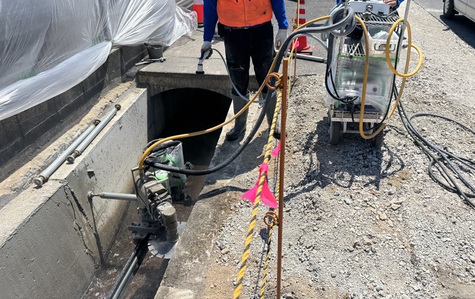 これに伴い、歩道脇の側溝を切り下げる工事も必要となったため、W2Rカッターによって既設側溝の内側を切断し、老朽化した側溝蓋だけをコンクリート製の蓋に取り換えることで短期間工事・バリアフリー化が実現しました。